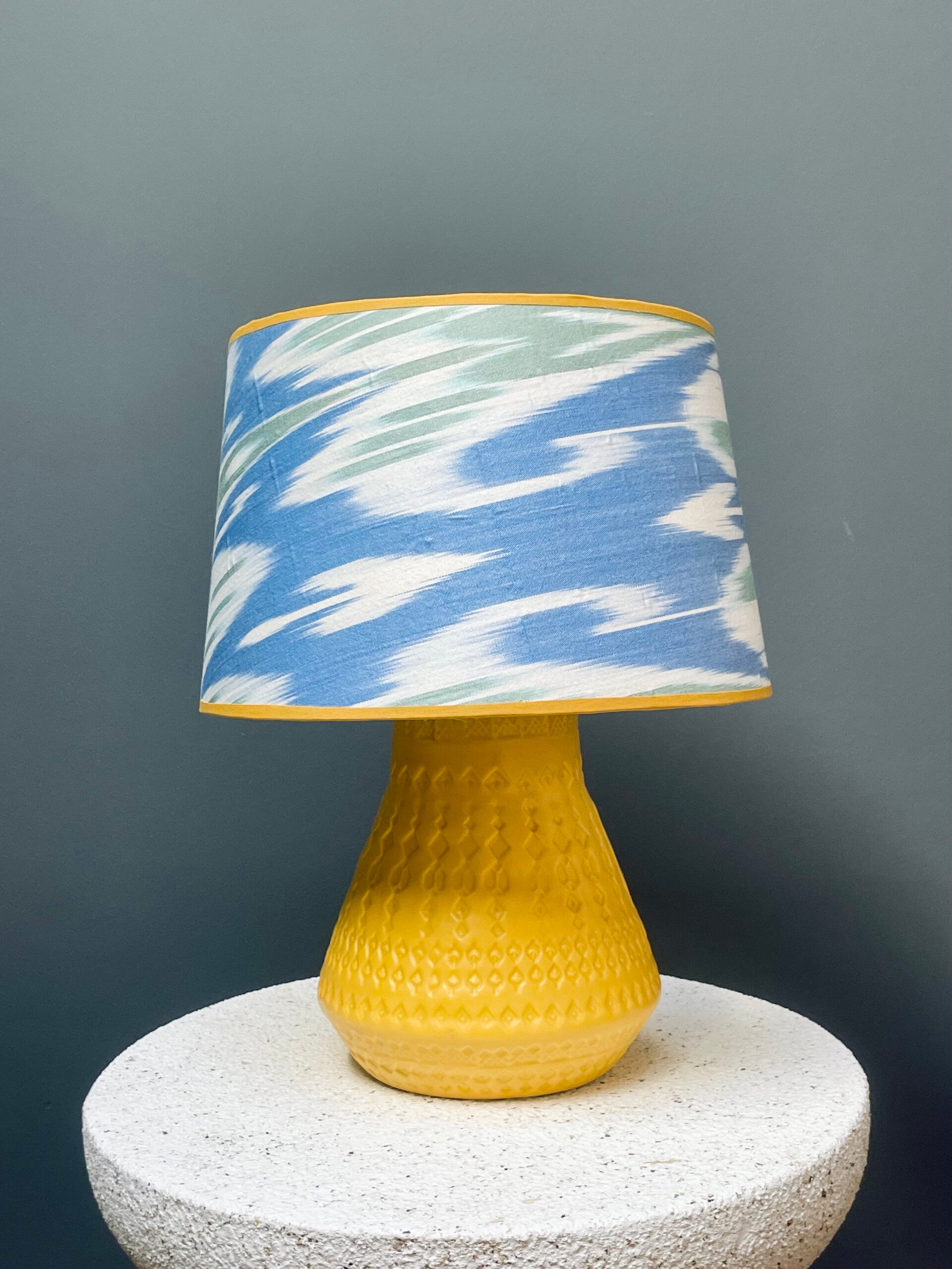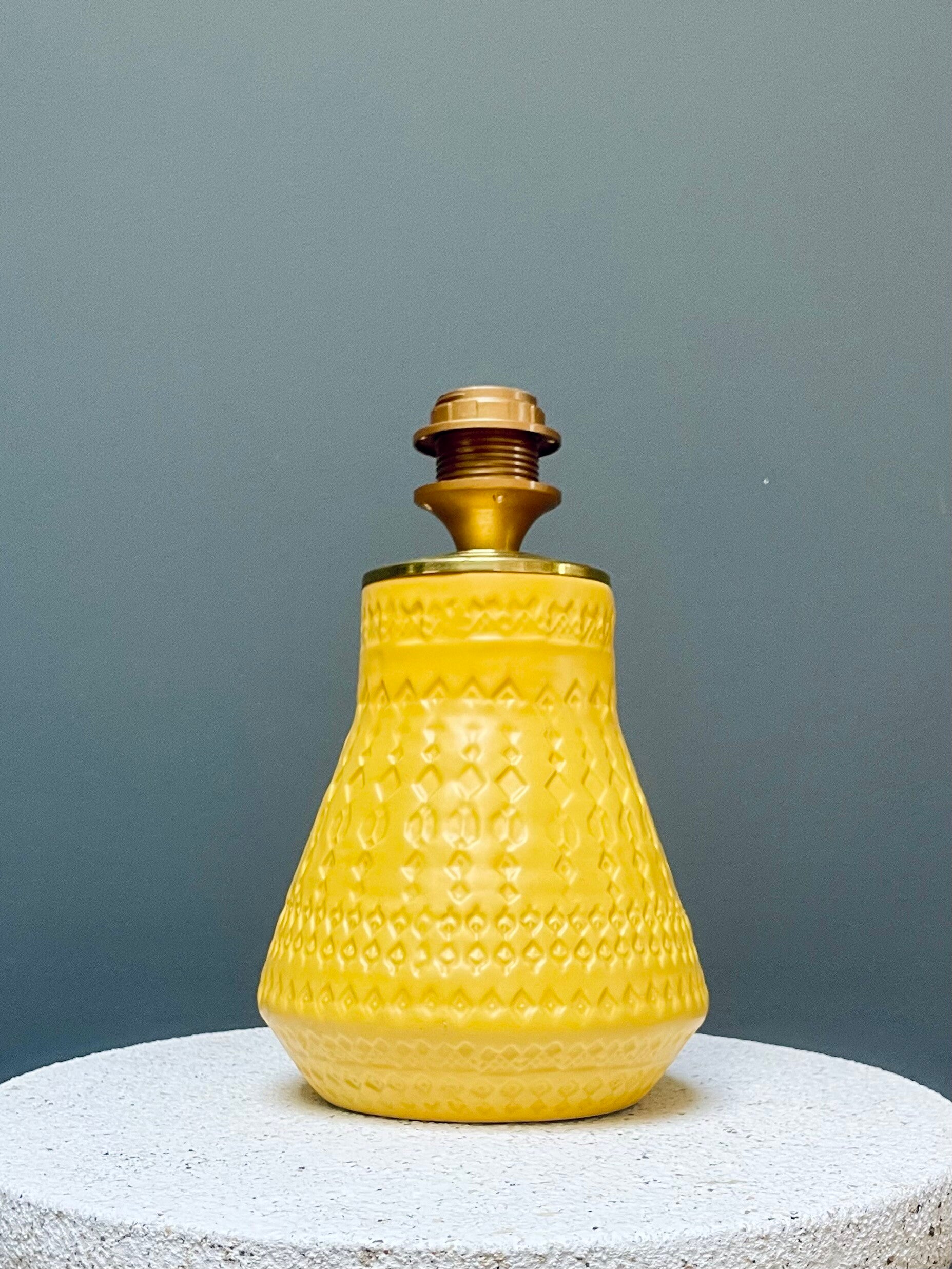 Gele lampenvoet gemaakt van een pre-loved vaas.
