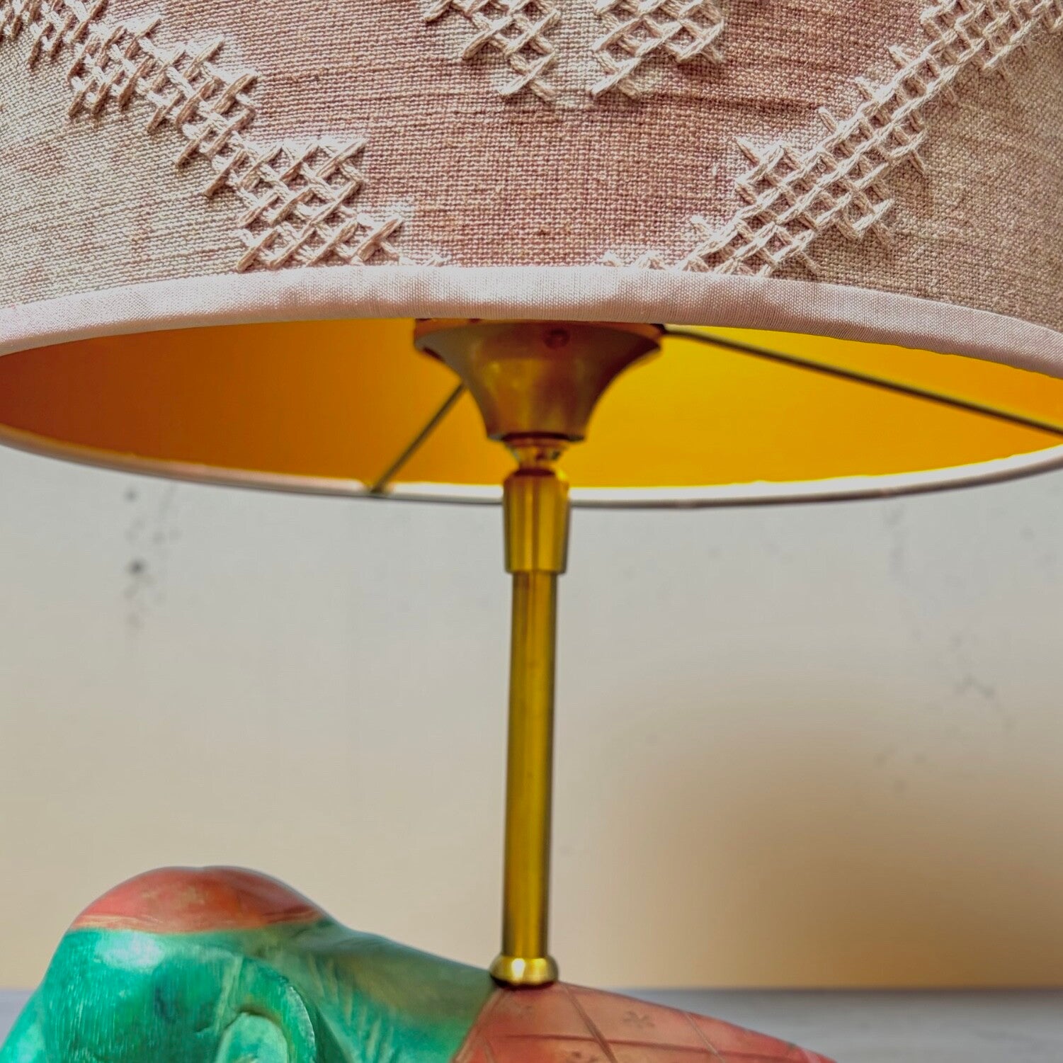 Deze bijzondere groene met poederroze olifantlamp is echt one of a kind!